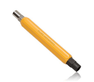 The can wrench features color-coded socket ends and built-in ribs on the barrel for user comfort, safety, and greater torque power. The two hex head sockets (7/16 inch and 3/8 inch) have reduced outside diameters that fit all new network interface devices. The 7/16 inch is black oxidized to easily distinguish it from the 3/8 inch zinc-plated socket end.