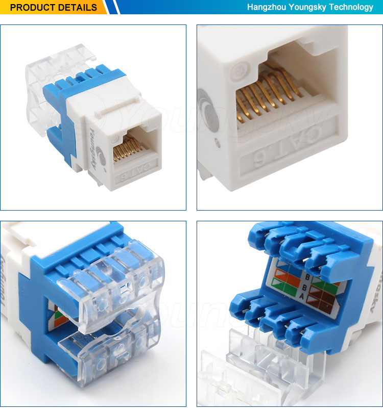 Keystone Jack Cat6 Female Socket 180 Degree Toolless I/O