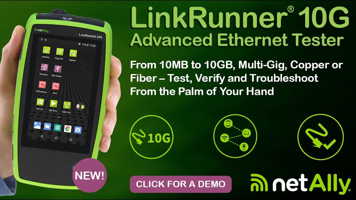 Introducing the new LinkRunner 10G, the most cost-effective solution for 10 Gig network testing. LinkRunner 10G simplifies testing and configuration of copper and fiber Ethernet networks, streamlining workflows by combining essential functions of installation and triage in a single, ruggedized unit. This next-generation Android-based tester delivers complete network validation and troubleshooting, from the media (copper/fiber) to the application (layers 1 – 7), accelerating deployments, speeding problem identification, and improving the efficiency and effectiveness of network installers and operations teams.