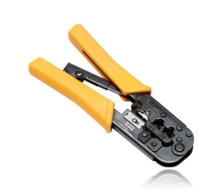 - Ethernet crimping tool with Embedded flat cable cutter and stripper